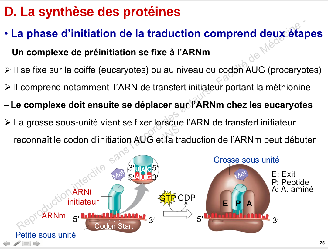 complexe de preinititation qui va se fixer sur l'ARNm et non la petite sous unité