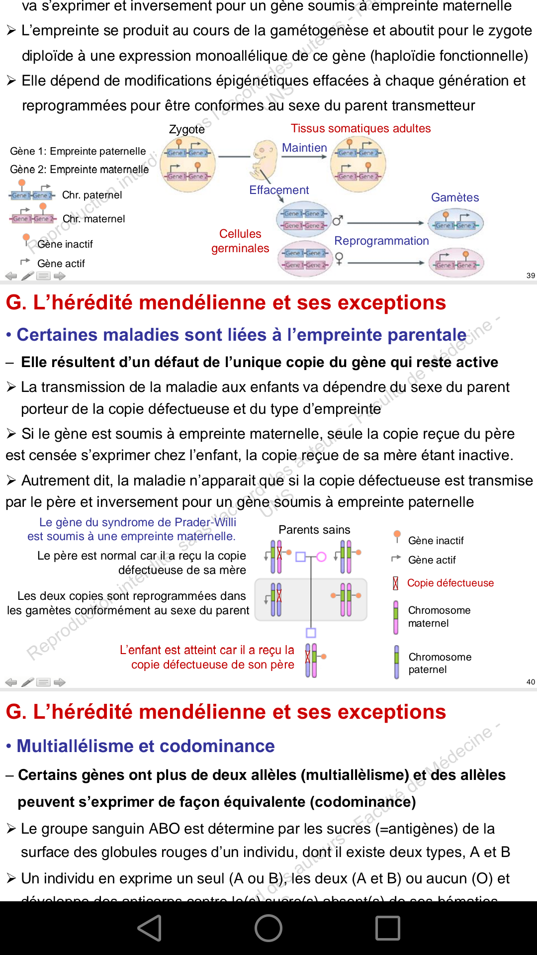 reprogrammée dans les gamètes de l'individu en tenant compte du sexe du parent qui a transmis cette copie.Dans le cas dont tu parles, deux situations peuvent arriver :