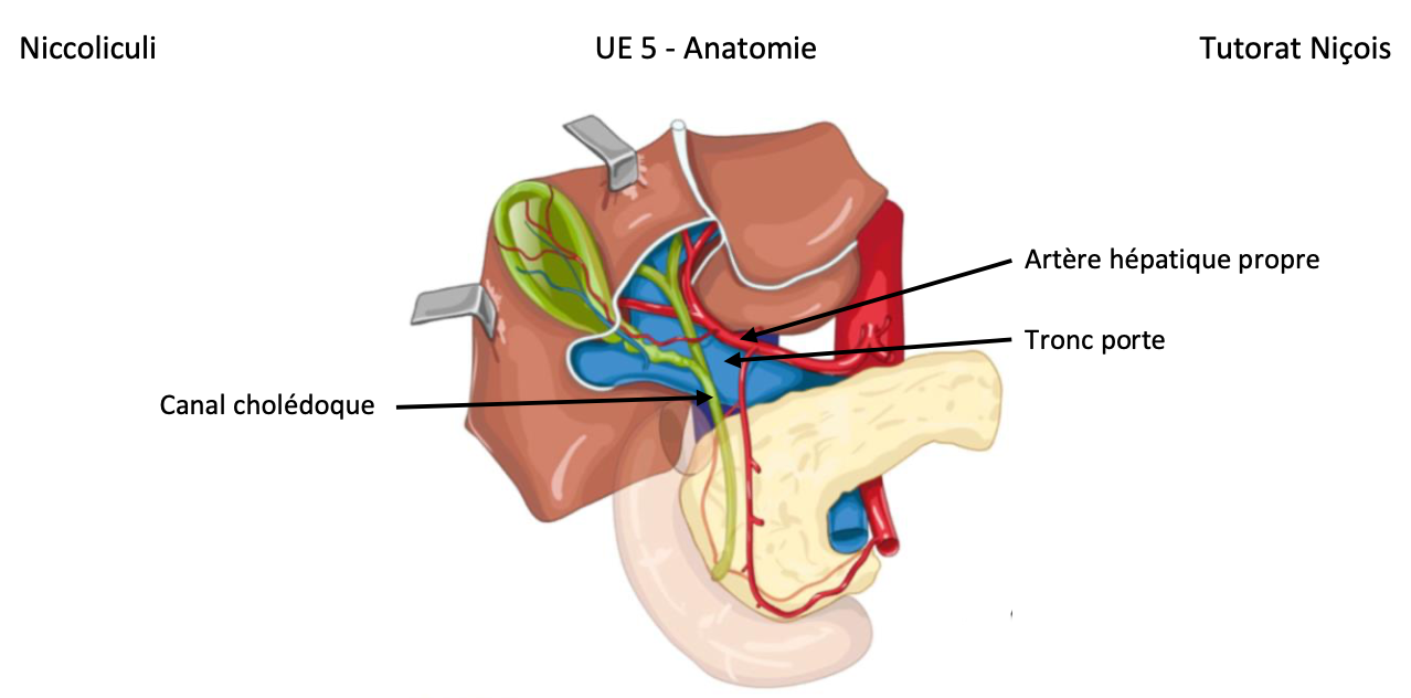 Petit récap : Le tronc porte est l’élément le plus postérieur du hile, l’artère hépatique propre est en avant et à gauche et la voie biliaire est en avant et à droite.