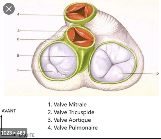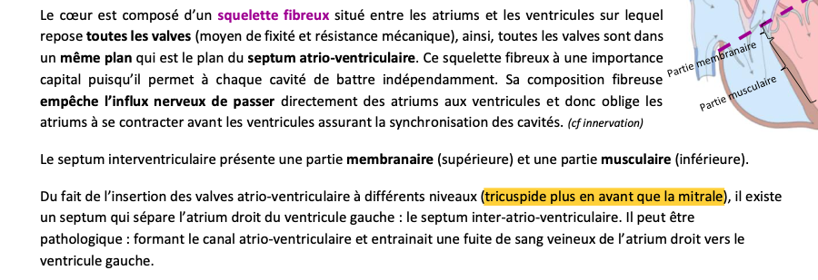 Et ensuite, on dit dans le cours que la valve tricuspide est en avant de la valve mitrale, mais pareil, dans le schéma du cours sur la vue sup des valves, j'ai l'impression que c'est plutôt l'inverse...