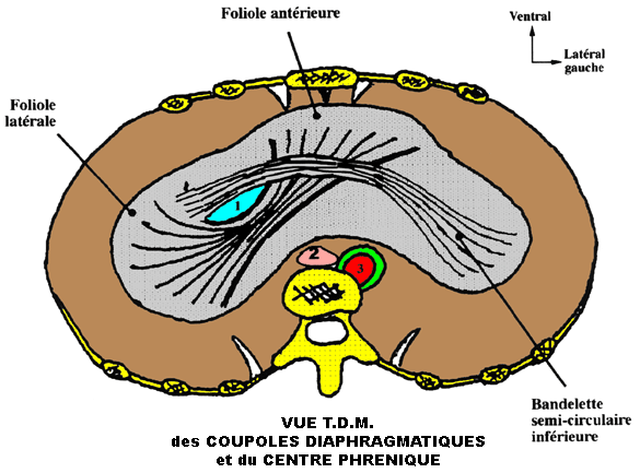 horizontale : le centre phrénique et c'est sur cette partie solide que va venir reposer le coeur et les poumons. Ce