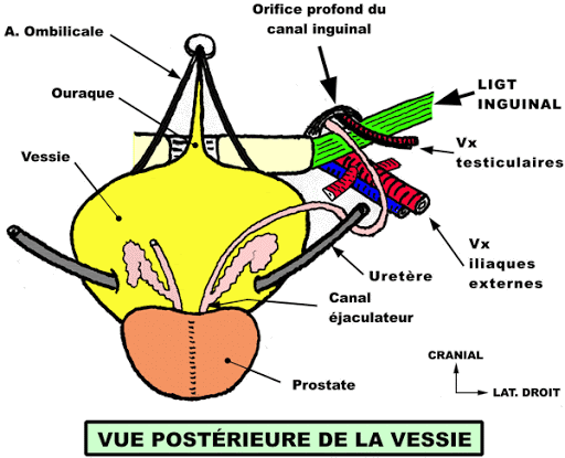 Le canal déférent passe par l’orifice inguinal et pénètre dans l’abdomen dans la région sous péritonéale