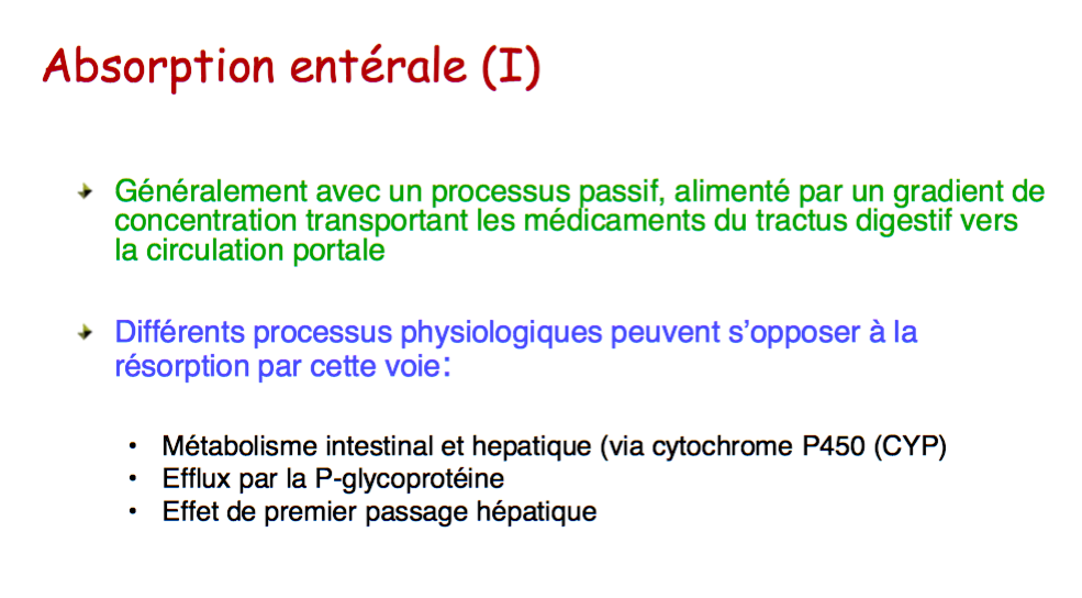 Et retiens la façons dont le prof à organiser cette partie du cours avec : Métabolisme intestinal et hépatique, phénomène d'efflux par la P-gP et l'EPPH