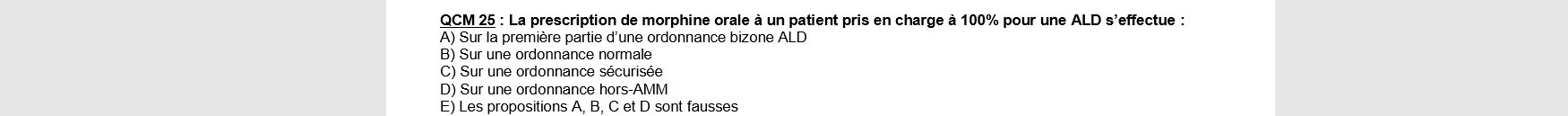La A et la C sont toutes les 2 vraies. Il existe aujourd'hui une ordonnance bizone sécurisée pour les prescriptions de stupéfiants et produits apparentés destinés à des patients en ALD. Ou sinon le médecin doit porter sur l’ordonnance sécurisée la mention ALD et retranscrire sa prescription sur une ordonnance bizone classique. Le patient présentera les deux ordonnances au pharmacien.