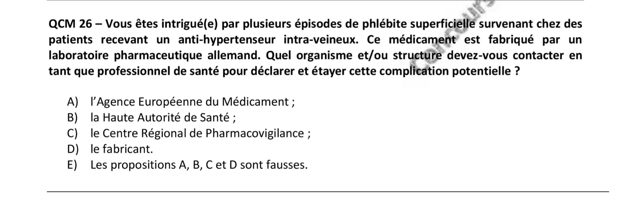 j’ai un problème avec ce qcm. Dans la correction de l’année dernière il n’y a que la réponse c de compter juste et je me demandais si la D ne pouvait pas être vrai également ? Car il me semblait que le professionnel de santé pouvait directement contacter le laboratoire pharmaceutique propriétaire du médicament