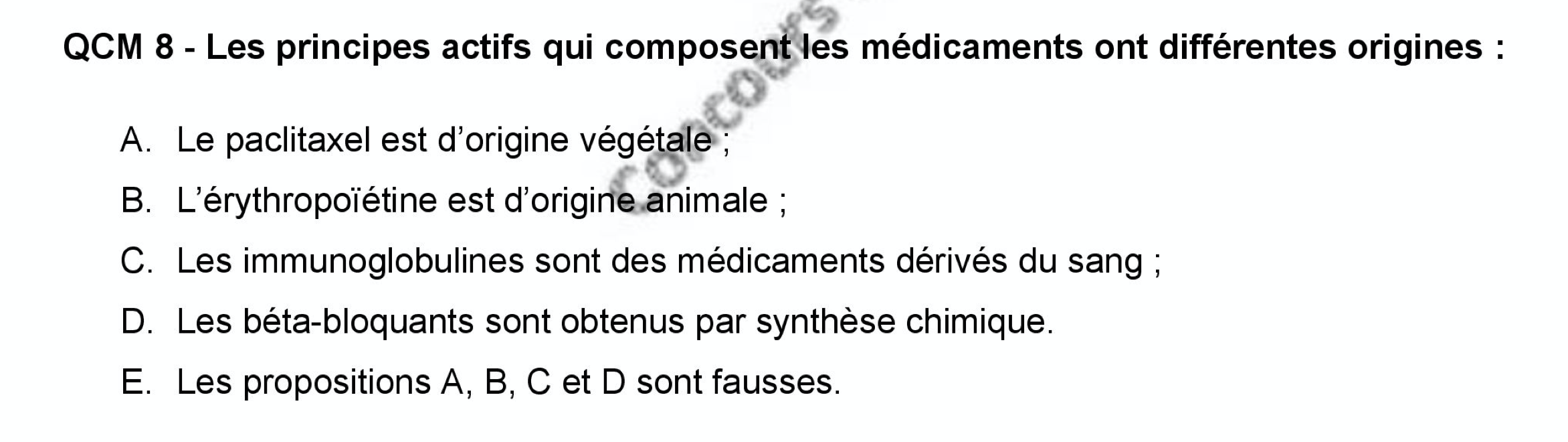 Perso je l'ai compté VRAI car je suis resté dans la logique, les tuteurs de 2013 sont du même avis que moi, mais ma prépa le compte faux car pour eux les dérivés sanguins sont d'origine humaine alors que les igg sont d'origine animale donc ce qui rend l'item FAUX...