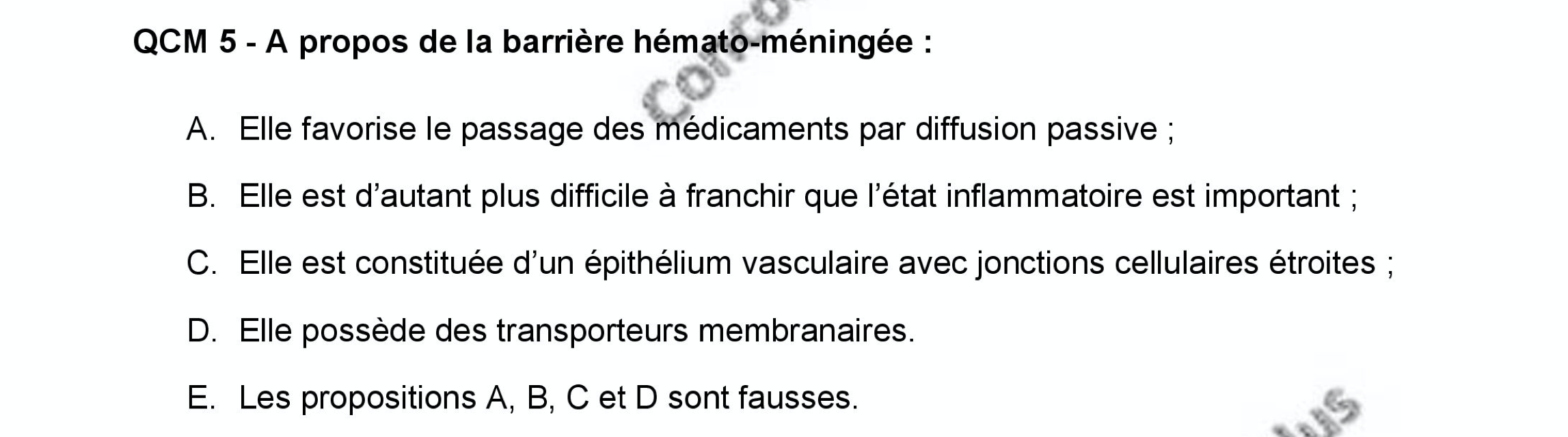 La correction de ma prépa est : "VRAI : La BHM est composée d'un endothélium composé de cellules étroitement liées ce qui favorise le passage des médocs par diffusion passive (transcellulaire)"