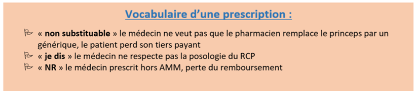 :arrow: Si le médecin a écrit « non substituable », le patient perd son tiers payant, c'est à dire qu'il doit avancer les frais et sera remboursé ultérieurement par la CPAM et sa mutuelle