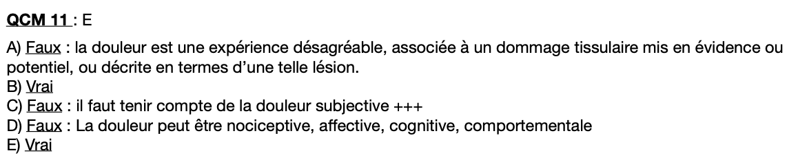 Comme la B était "La douleur objective est un signal d’alarme à ne pas négliger" je ne l'ai pas comptée juste puisque la douleur ne peut être que subjective, non?