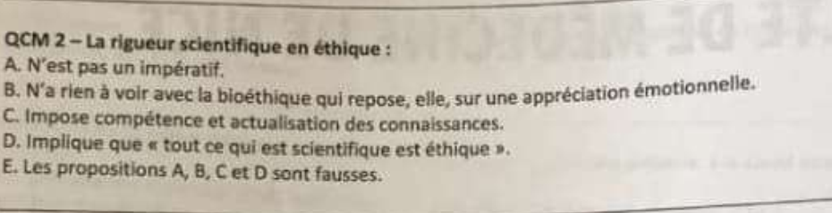 2/ pour la 2 le tuteur compte seulement la C juste or la D ne l’est-elle pas car le prof dit tous ce qui n'est pas scientifique n'est pas éthique donc c’est pareil non ?