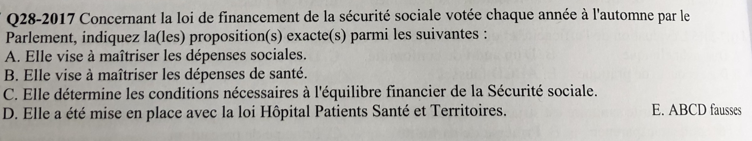 J'ai cherché dans mon cours pour comprendre pourquoi la A est fausse mais je n'ai pas compris. Lorsque j'ai recherché sur internet, sur le site de la sécurité sociale, (https://www.securite-sociale.fr/la-secu ... esentation) j'ai trouvé que la loi LFSS "vise à maîtriser les dépenses sociales et de santé"