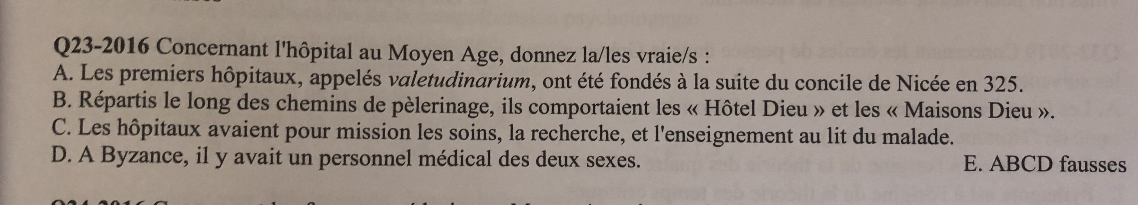 Les 2 premiers items concernent les Xenodochions et pour l'item C il n'y a pas la recherche il me semble.