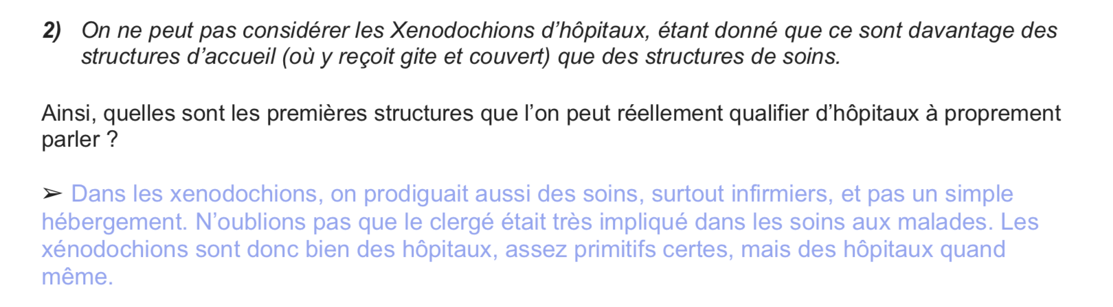 J'ai juste une autre petite question: qui est ce qu'on peut considérer comme les premiers hôpitaux ?