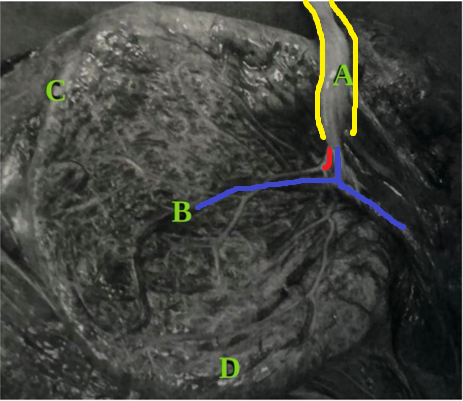 - la première c'est qu'on voit que le tuyau est plutôt imposant (gros calibre) et il a l'air beaucoup plus musculaire / tonique que les autres, il nous fait donc + penser à une artère qu'une veine (qui est plutôt flasque, et moins grosse)