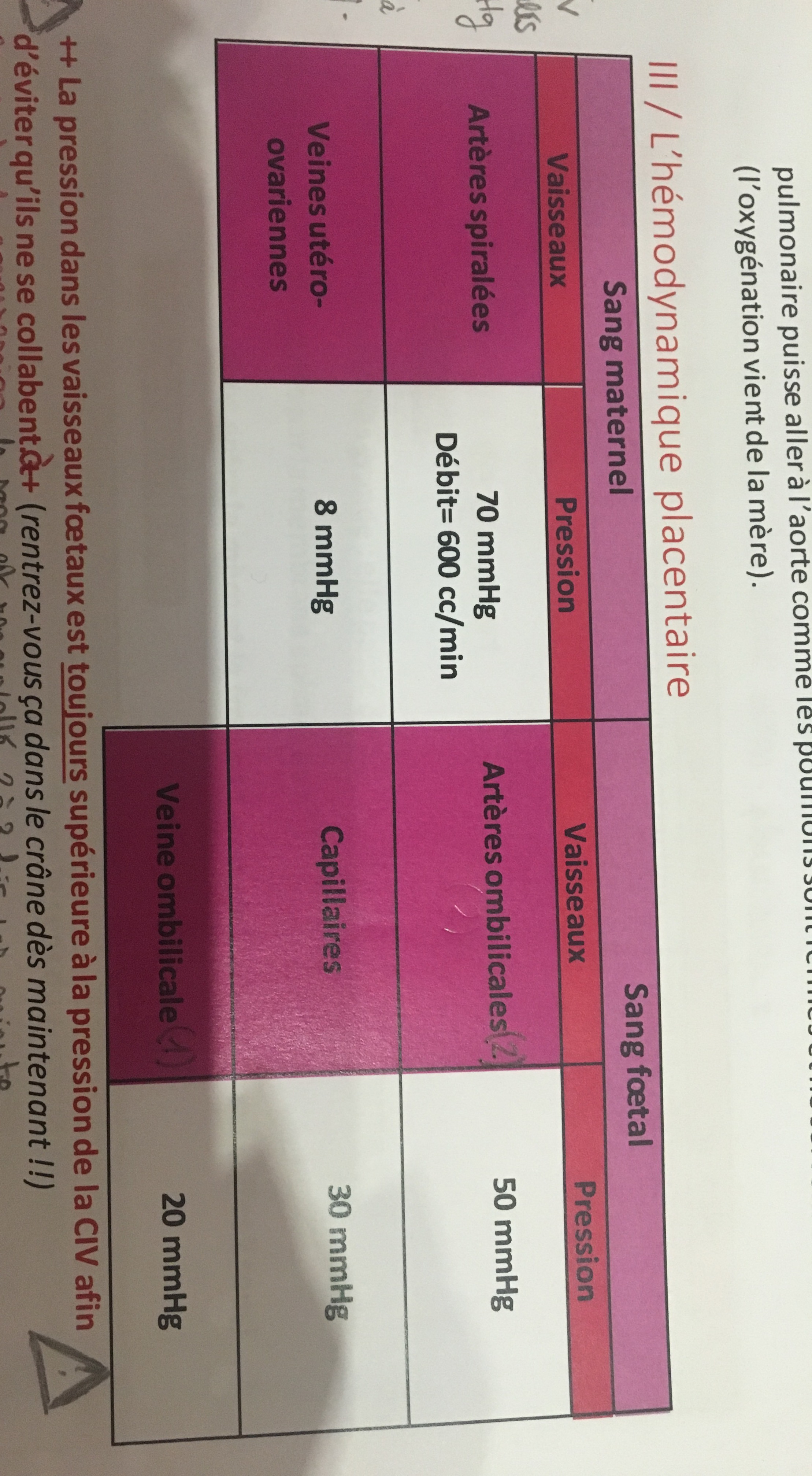 En fait j'ai pas trop compris en Quoi la phrase en rouge illustre le tableau car ds le tableau il n'y a aucune indication concernant la CIV mais juste les Artères spirales et veines utero ov. Donc qu'elles sont les valeurs du tableau à retenir pour illustrer la phrase en rouge svp