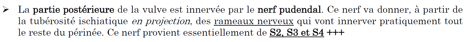 En l'occurence, je faisais référence à la partie postérieure de la vulve, qui est donc innervée par les rameaux issus du nerf pudendal ; d'où ma justification !