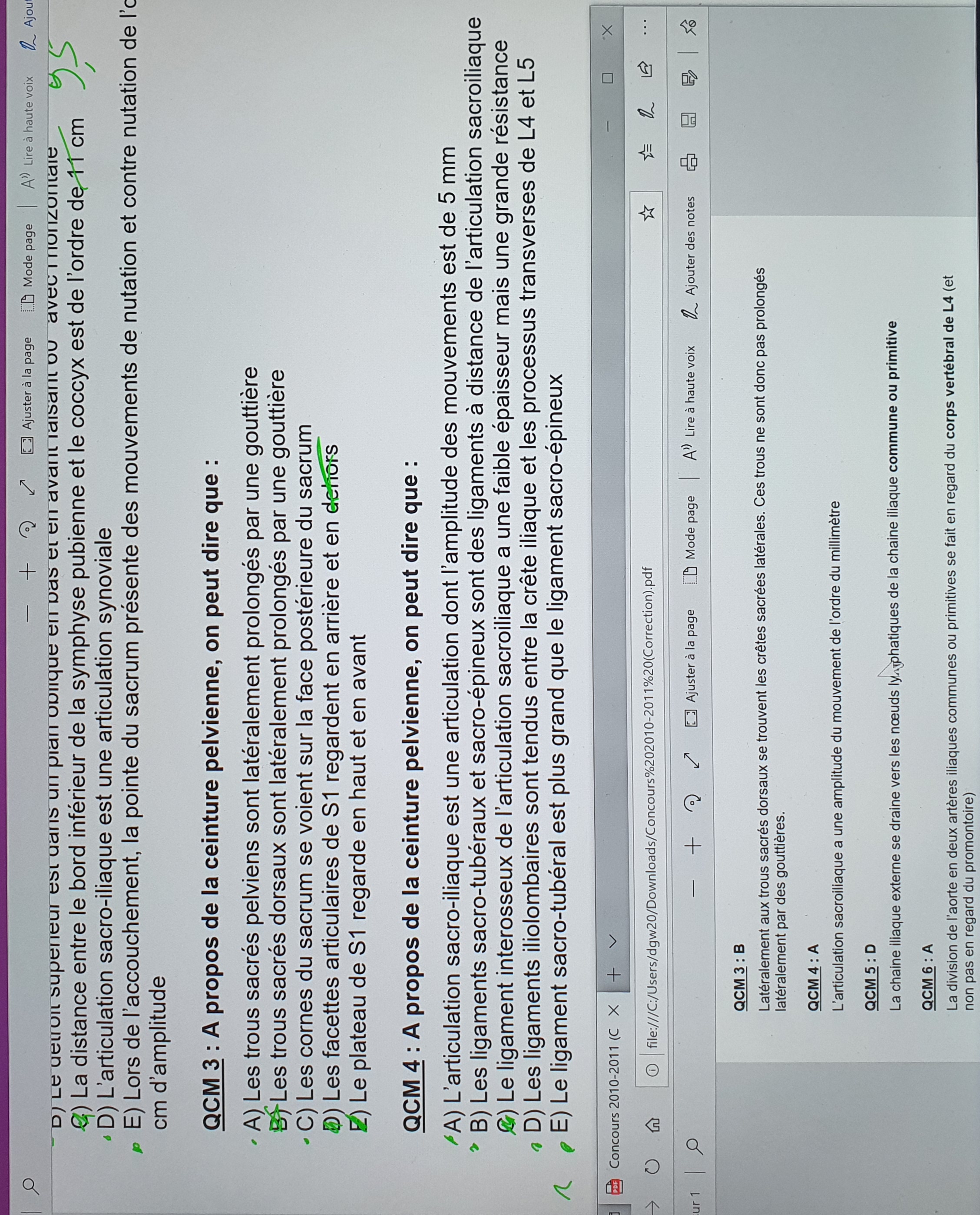 De plus, pour l'item E (Lors de l’accouchement, la pointe du sacrum présente des mouvements de nutation et contre nutation de l’ordre de 5 cm d’amplitude) dans la correction vous mettez "Les mouvements du coccyx pendant l’accouchement son millimétriques (pas centimétriques)."