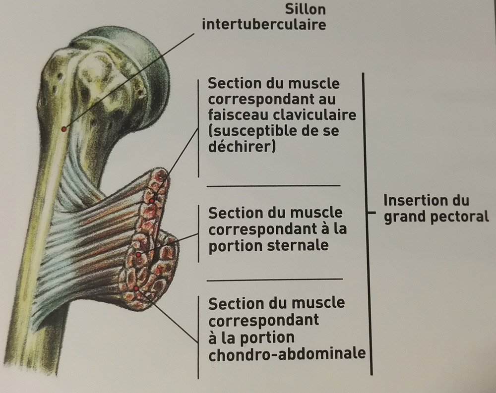 Et pour finir je te montre l'insertion globale du Grand pectoral sur l'humérus :