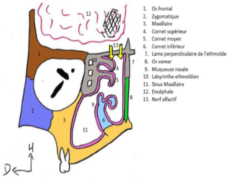 Je te remet le schéma de la vue antérieure des fosses nasales pour t'aider à mieux comprendre !