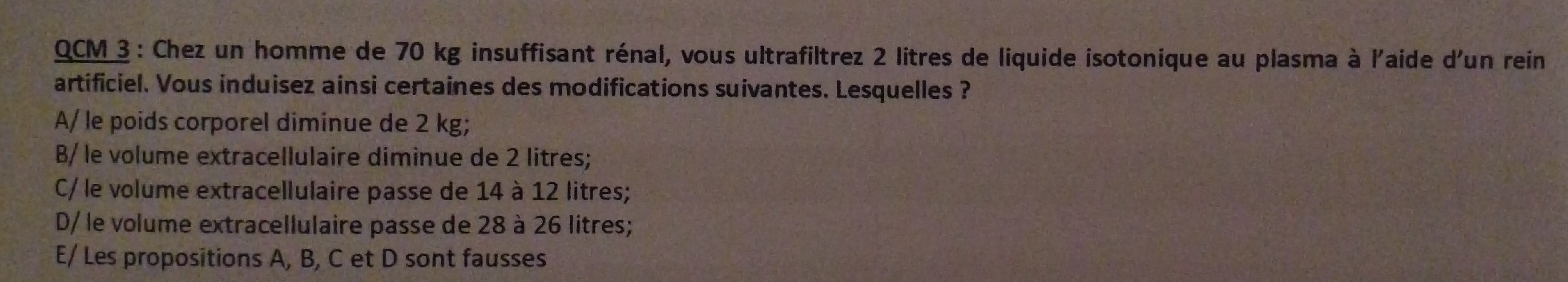 Donc dans ce QCM le poids corporel diminue bien de 2L pendant le procédé.