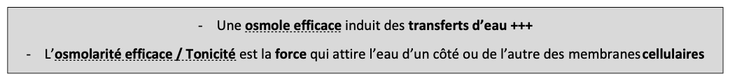 Alors, bien sûr que la tonicité ne prend en compte que les osmoles efficaces !! C'est tout le principe de l'osmolarité efficace = tonicité :wink2: