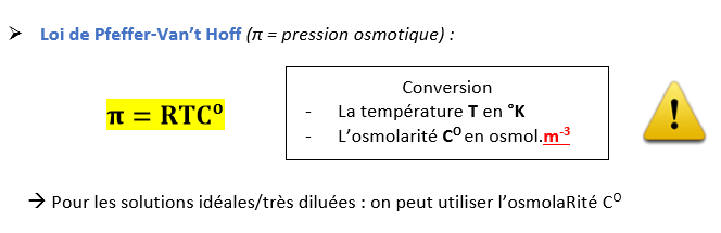 QCM 8 : Quelle est la valeur de la pression osmotique (à 25°C) exercée par une solution contenant 3 g/L de NaCl sur une membrane étant imperméable à ces 2 ions ? Constante des gaz parfaits R= 8,31