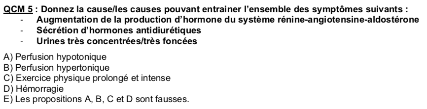 Lors d'une perfusion hypertonique, il y a une diminution de la sécrétion des hormones du SRAA (diapo 13 du Pr Favre). On ne va pas vouloir garder du sel. L'augmentation de la production des hormones du SRAA se fait lors d'une diminution de pression : ce n'est pas le cas lorsqu'on fait une perfusion hypertonique.