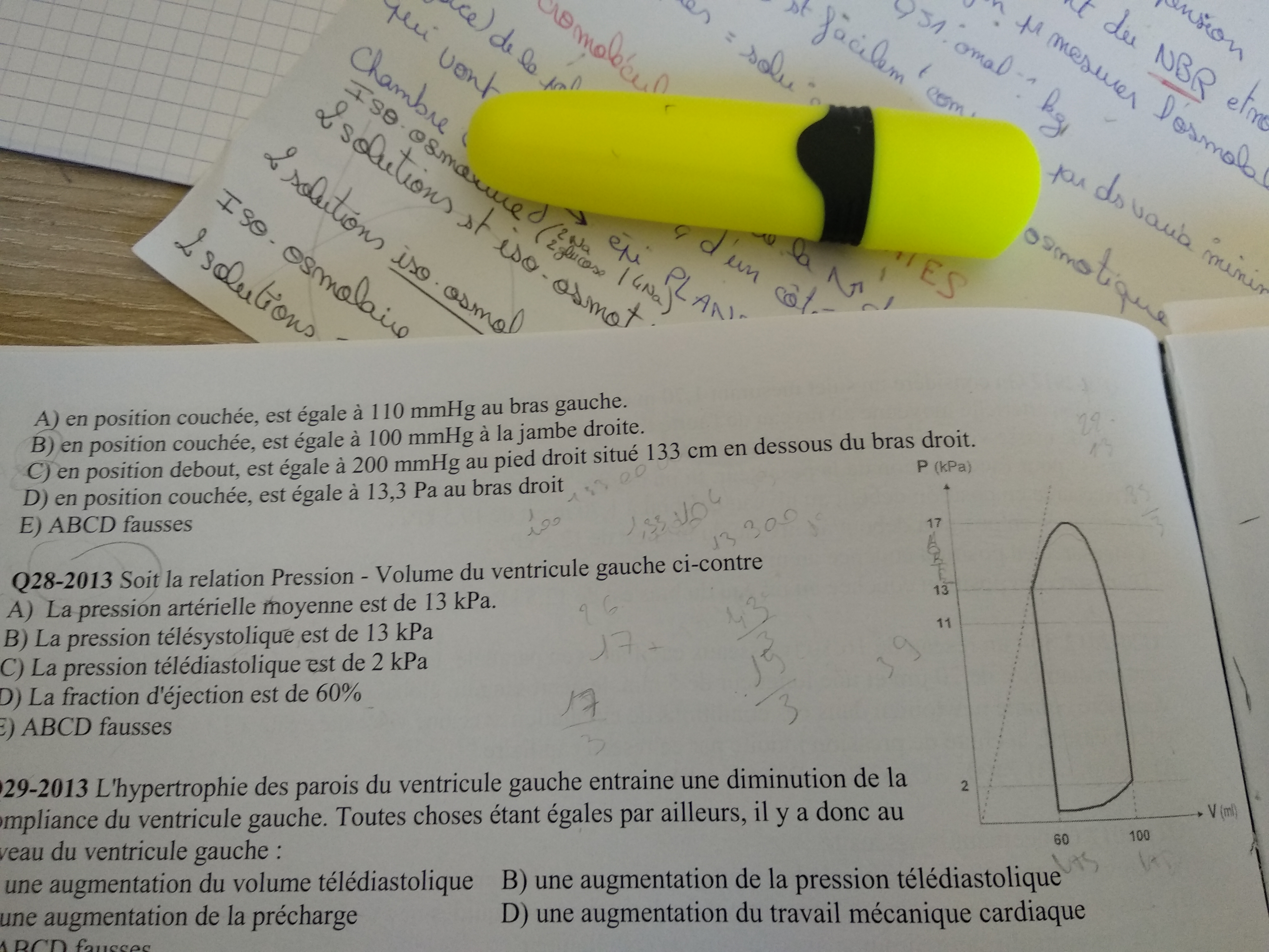 La fin de la diastole se trouve au niveau du point correspondant à la fermeture de la valve mitrale. La Pression télé-diastolique est donc la pression correspondant à ce point soit 2 kPa.