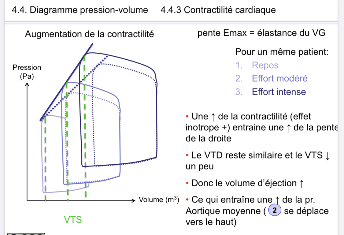 de plus normalement quand la contractilité augmente, le VTD reste le même et le VTS diminue un peu, mais ici ce n'ai pas le cas.. dans le schéma du qcm à un moment j'ai cru qu'il comparait le patient à des état diffèrent, à des effort diffèrent, mais ce n'ai pas le cas pense.. °ça ne concorde pas avec la diapo du prof @@ @@