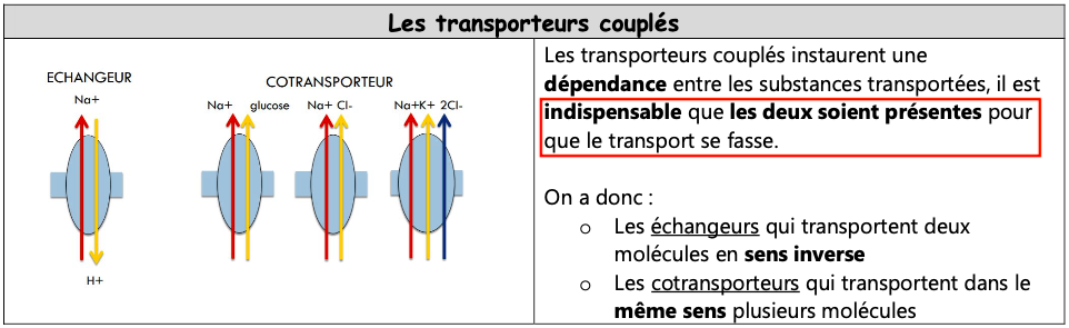 QCM 14 : Du coup je suis allée fouiller dans la ronéo et cette année c'est écrit que la présence des 2 molécules est nécessaire au fonctionnement des transporteurs couplés, donc retiens cette version pour cette année.