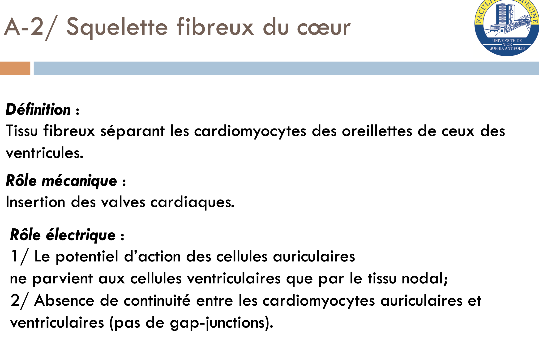 Du fait qu'il y a ce squelette fibreux, le PA des cellules atriales n’arrive aux cellules ventriculaires que par le tissu nodal (les cellules nodales).