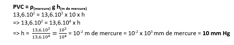 On va maintenant passer en mm Hg. On cherche donc h en mm Hg.