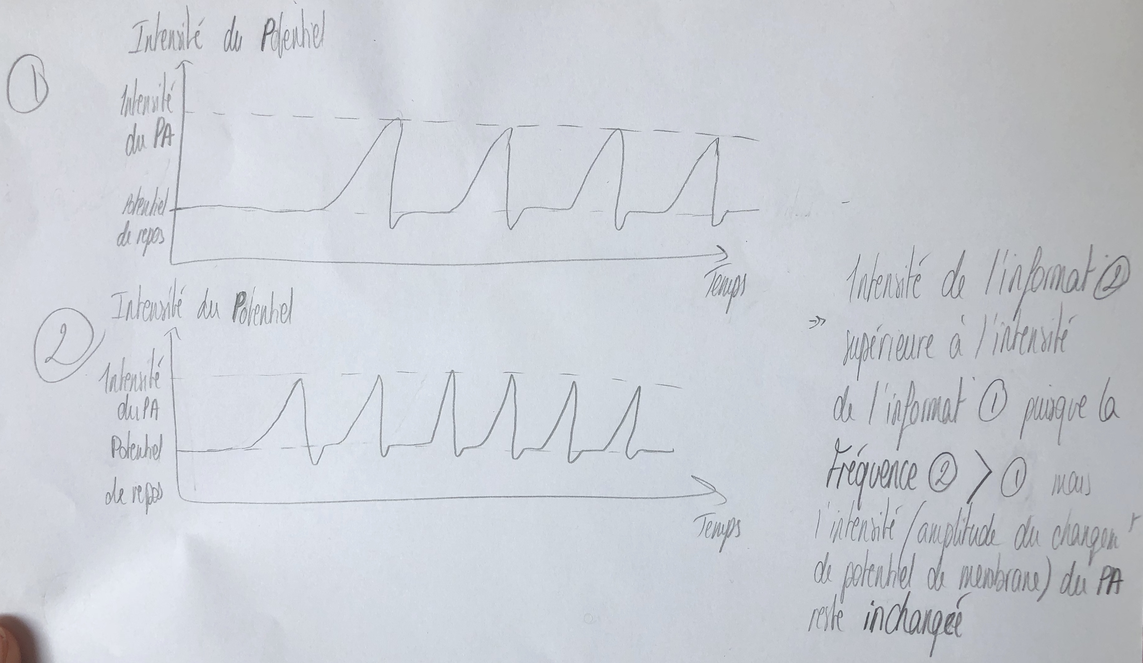 L'item "la fréquence du PA est fixe pour un axone donné" est fausse car en fonction de l'information de départ (et son intensitééééééé), la fréquence peut varier pour un même axone dans le temps