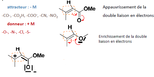 Je ne comprends pas pourquoi dans l'effet mésomère de la premiere molécule :