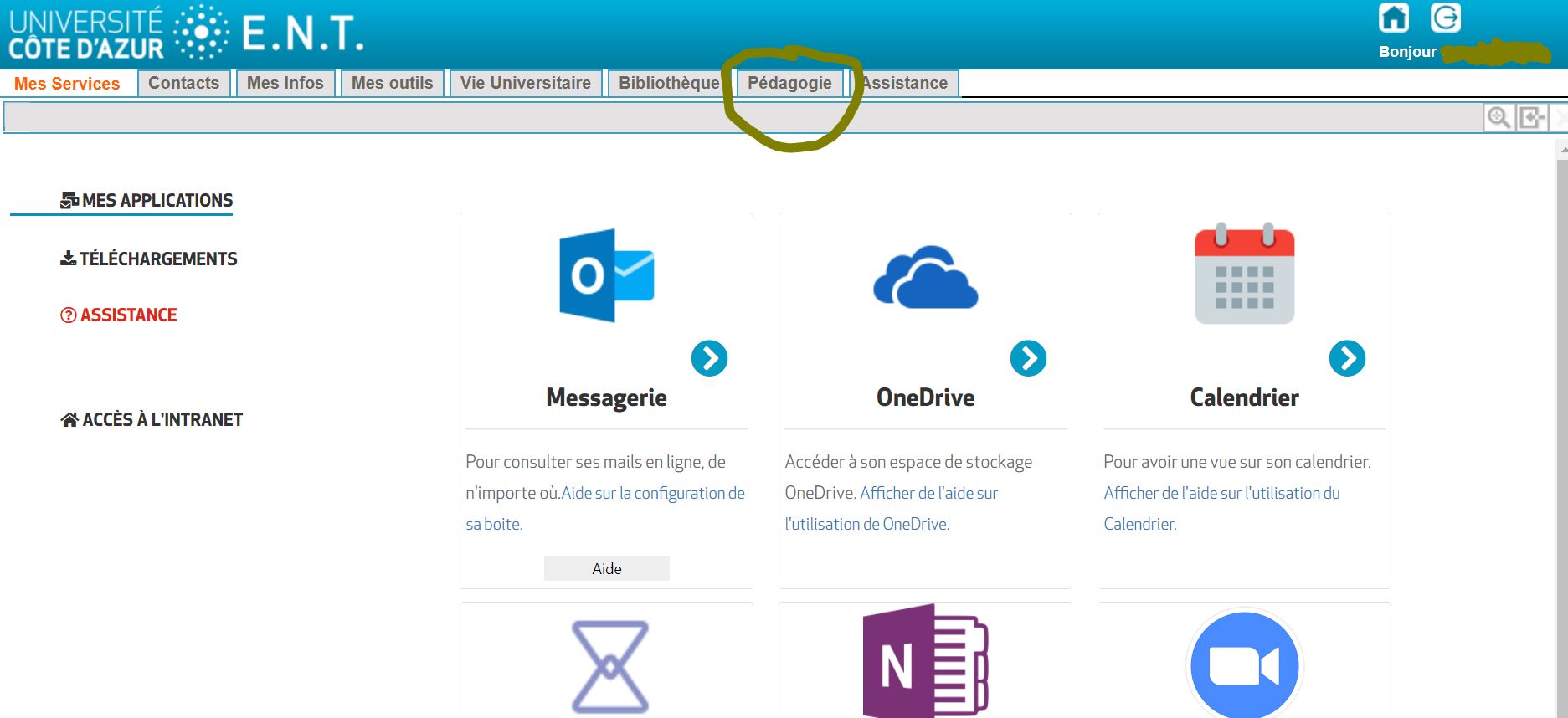 Etape 1 : se connecter à son ENT (logique) et aller dans l'onglet pédagogie