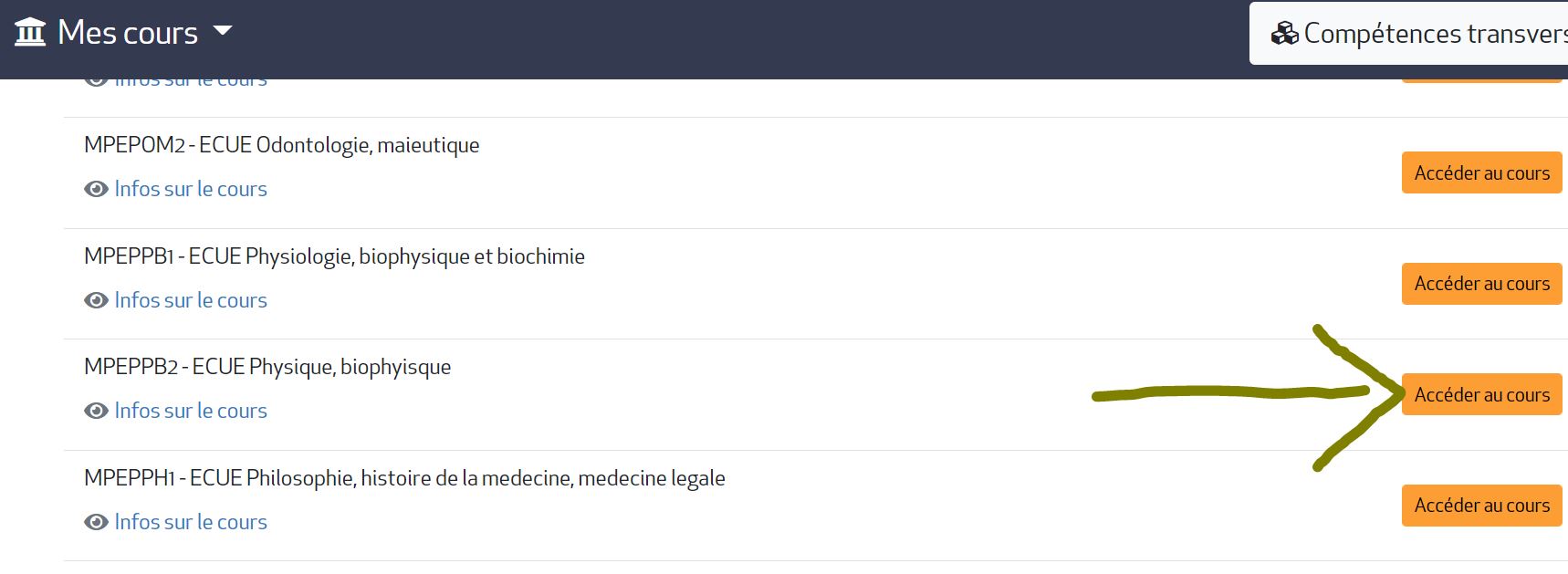 Etape 2 : Aller dans l'onglet de la meilleure matière : physique/biophysique