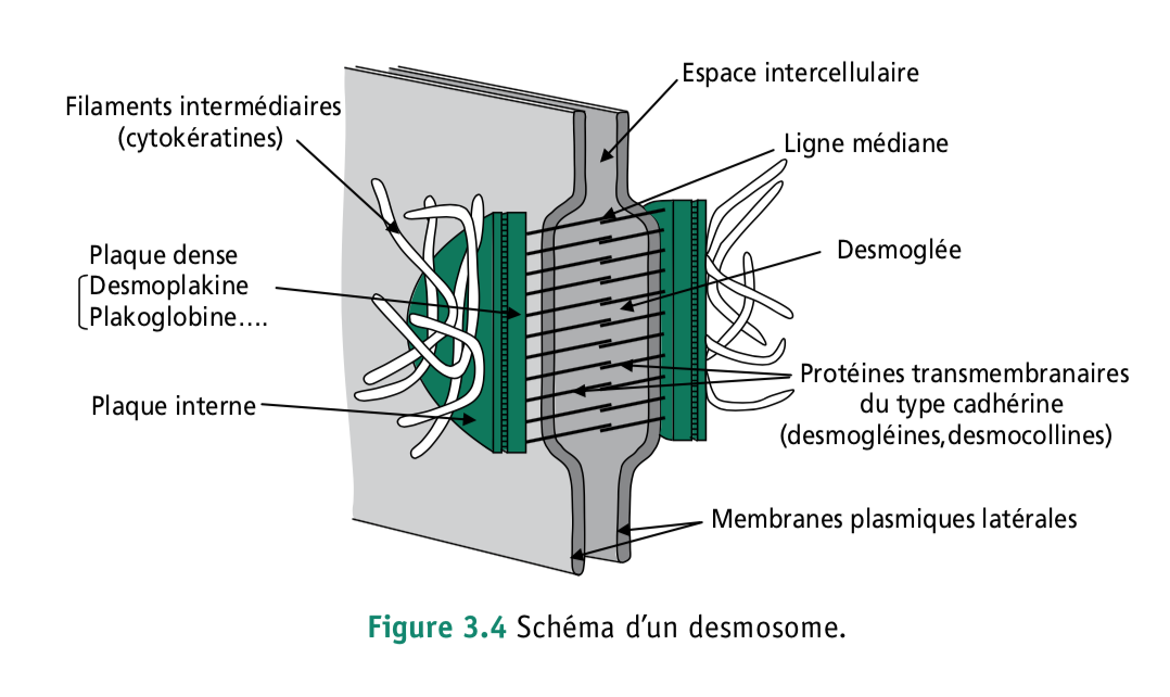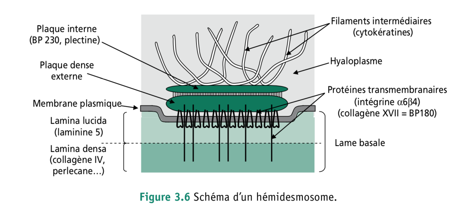 De plus, je ne comprends pas pourquoi c'est l'hémidesmosome qui a une double plaque dense intracytoplasmique et pas le desmosome :sweat: :sweat: je ne visualise pas du tout les structures :crying: