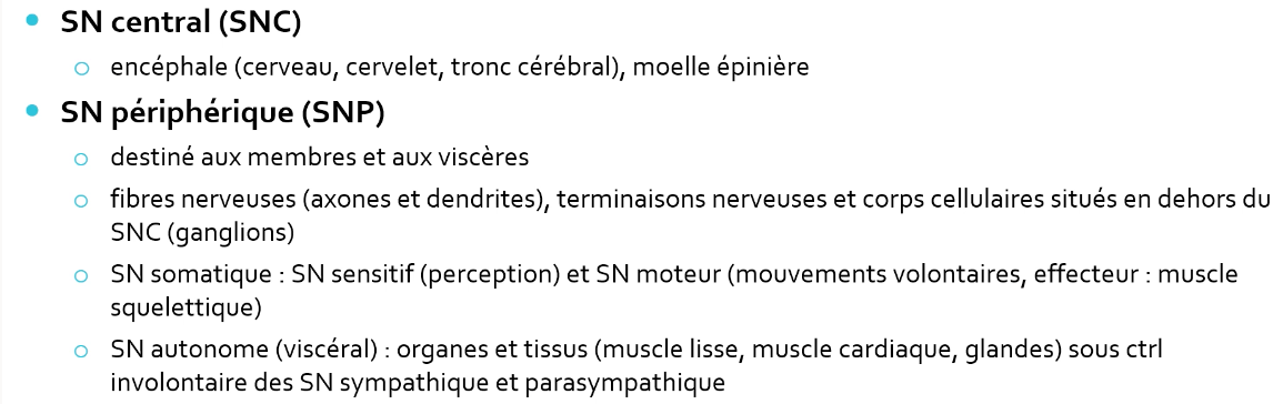 SNC = encéphale + moelle spinaleSG : corps cellulaires neuronaux + synapses