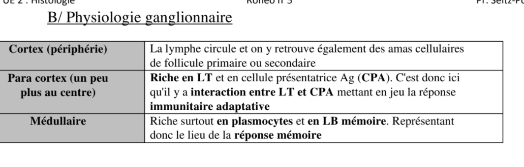 Maintenant pour la médullaire on dis que c’est constitué de macrophages et de quelques lymphocytes T puis des plasmocyted et des lymphocytes B mémoires.