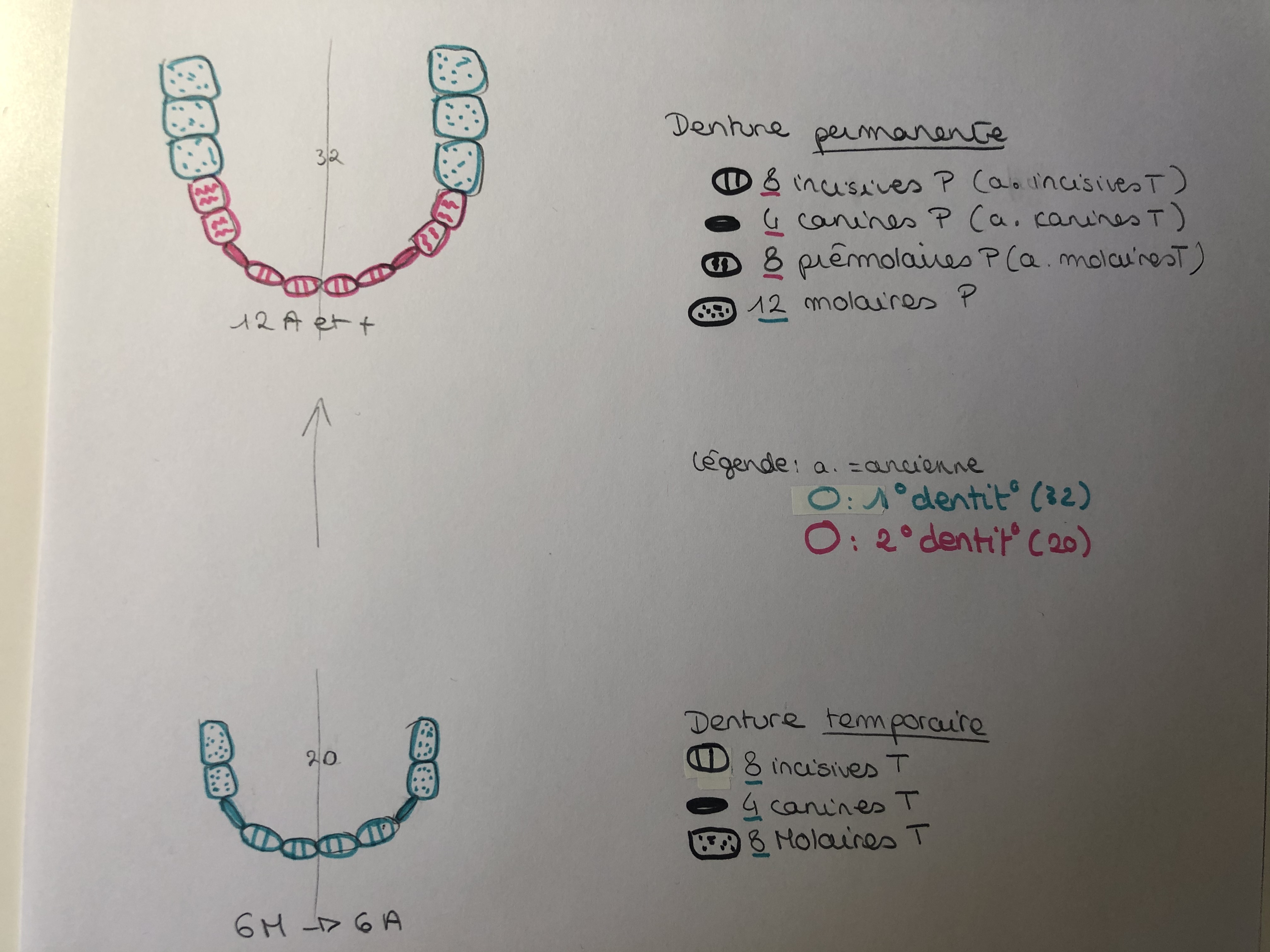 Alors en permanent tu auras toujours 32 dents au total, et en temporaire tu en auras toujours 20.