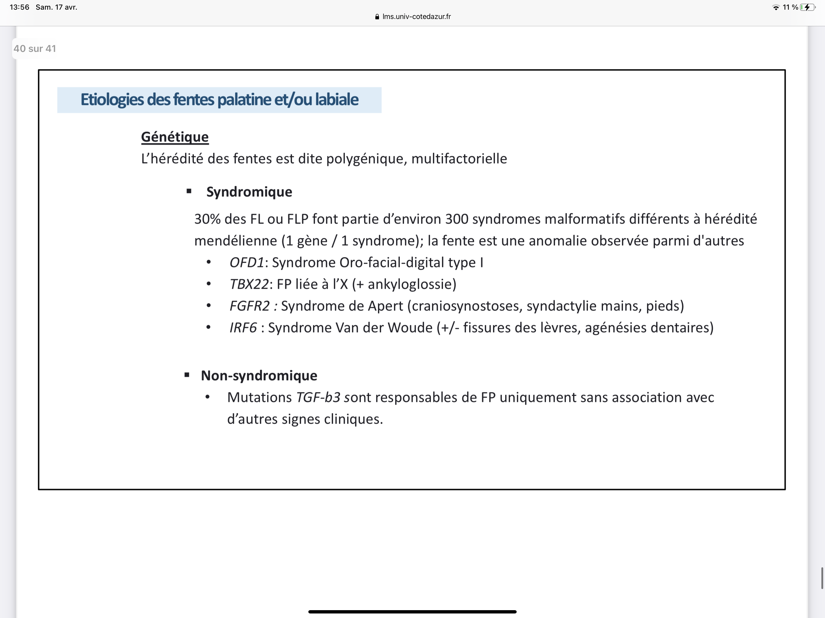 J'aimerais avoir ton avis sur l'item suivant "une mutation du TGF b3 peut être à l'origine d'une FLP"