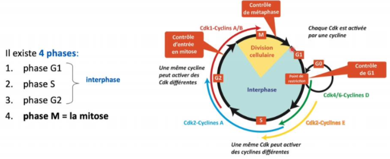 Dans la ronéo 1 sur la méiose/mitose, vous nous dites que le cycle cellulaire est contrôlé par les cyclines etc. et que « pour passer de la phase G1 à S, il y aura des cyclines D et des Cdk4/6, pour passer en phase S c’est les cyclines E et Cdk 2 ».