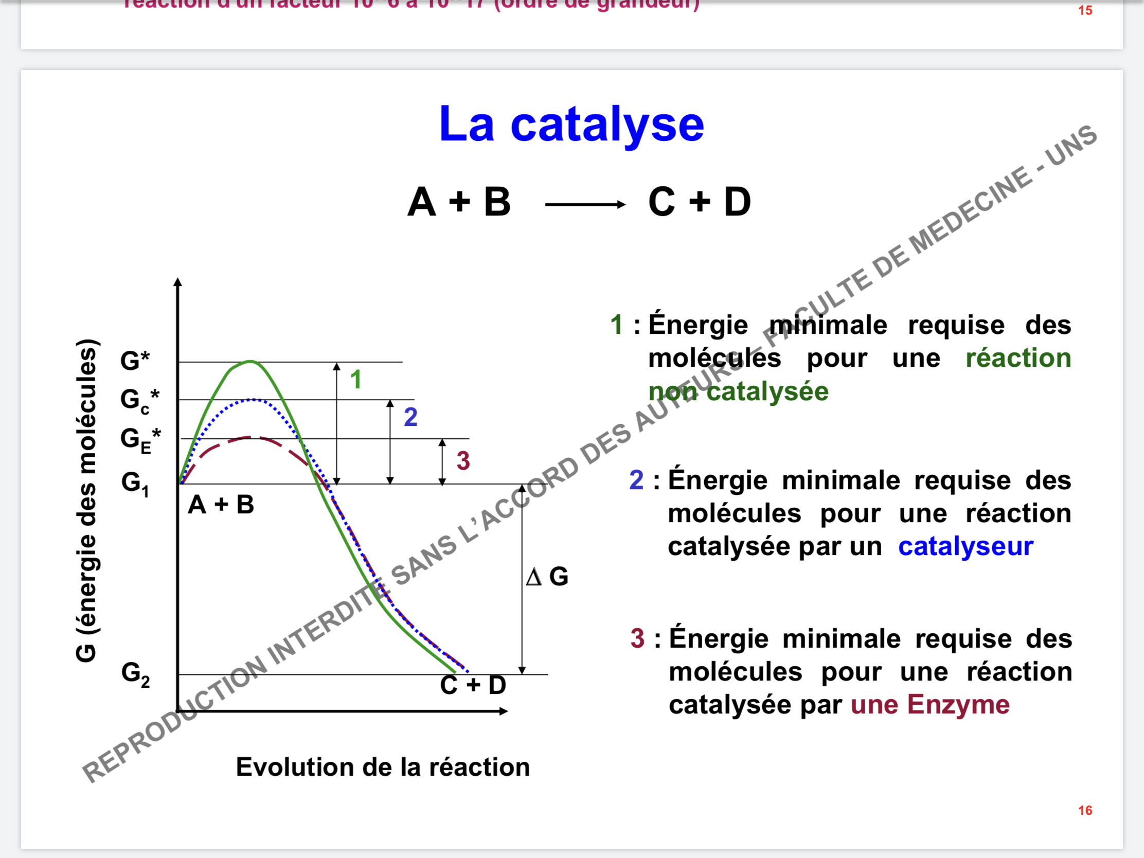 Petite question éclair, dans le cours d'enzymo, on nous dit que le rôle du catalyseur est de diminuer l'énergie d'activation d'une réaction (ça je sais que c'est le cas à la fois pour l'enzyme ET le catalyseur chimique).