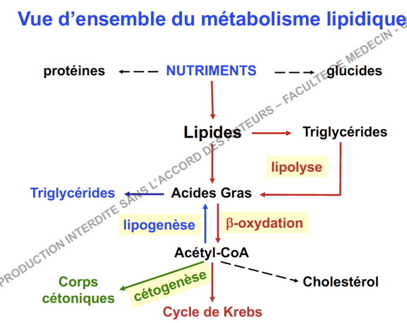 lipolyse intracellulaire cette fois par action de la LHS pour libérer des AG puis la B-ox pour produire de l'acétyl-CoA et produire de l'énergie dans le CDK.Un petit schéma pour bien visualiser ça :