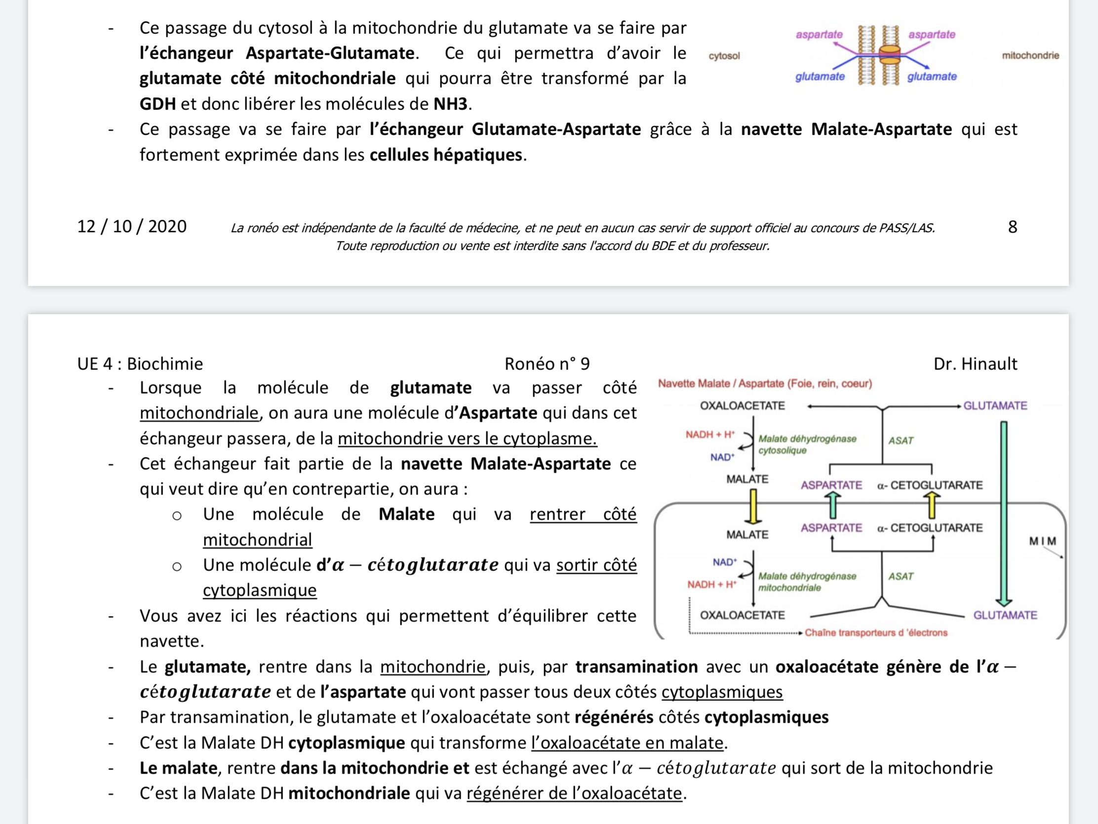 Alors effectivement la prof n'explique pas trop pourquoi on trouve la navette malate/aspartate au niveau de la MIM. Mais elle a un peu plus détaillé le sujet dans le cours des PASS / LAS donc je vais utiliser cette explication là pour t'aider à retenir que cette navette se trouve au niveau de la MIM :
