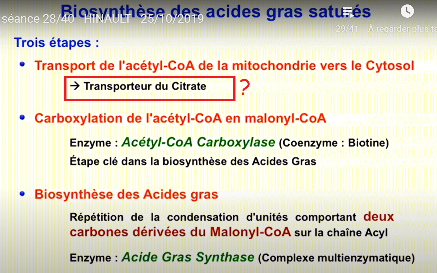 Re: Transport de l'acétyl coa - Biosynthèse des AG