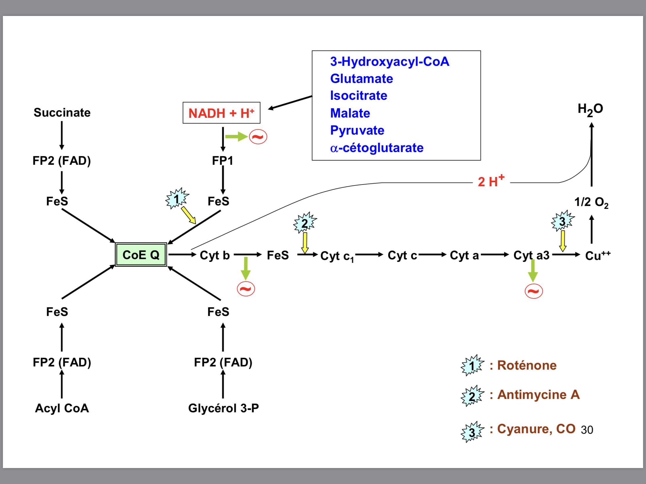 On dit que c'est le CN et le CO qui inhibent entre le Cyto a3 et les atomes de cuivres. Mais du coup ce serait pas uniquement entre Cytochrome a3 et le deuxième atome de cuivre ? puisqu'il se suivent ?