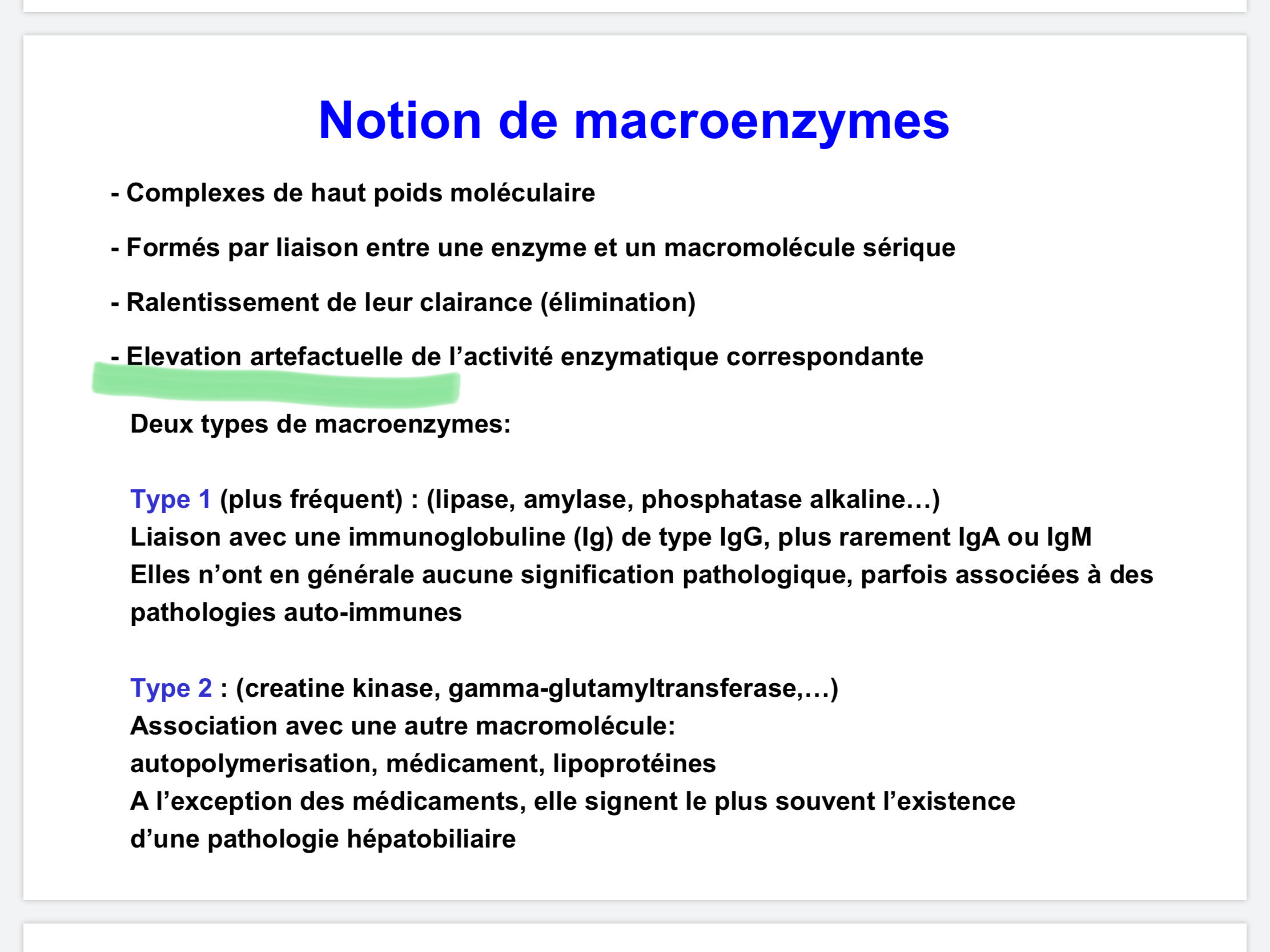 petite question pour ce QCM, dans le cours on dit que comme les macroenzymes sont difficilement éliminées du sang, cela à 2 conséquences :