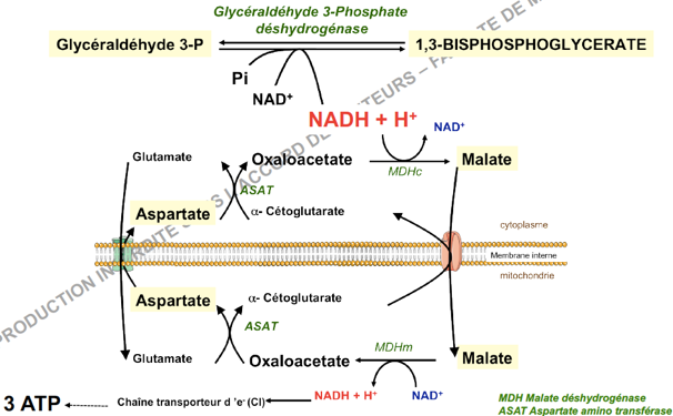 Ce passage du malate, il est est équilibré par un passage d’un alpha-céto glutarate de la mitochondrie vers le cytoplasme.