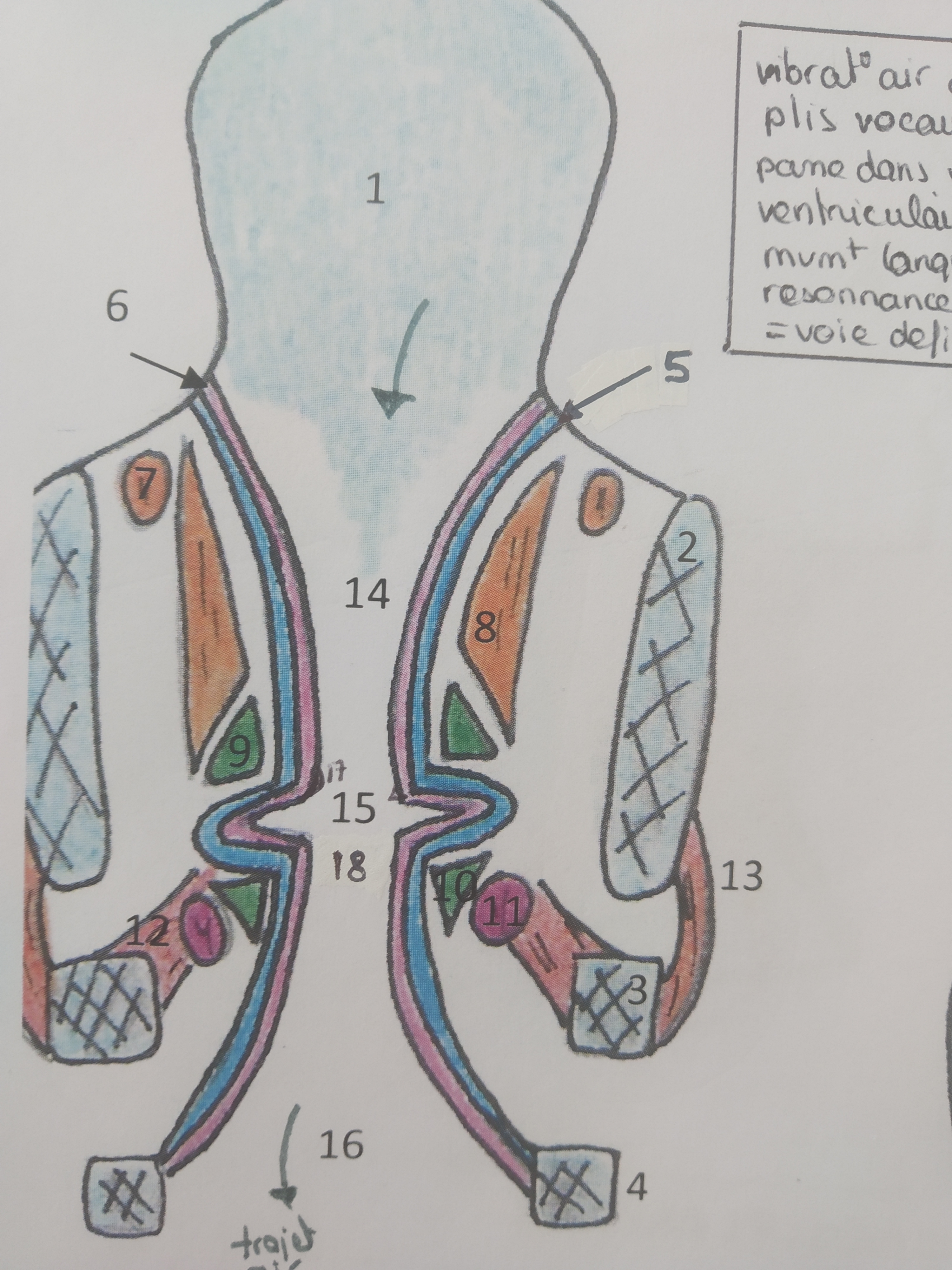 Le 8 est annote comme muscle thyro arythenoidien. Je suis hyper embetee parce que je ne retrouve ce muscle dans aucun autre schema des muscles du larynx. De plus le seul muscle qui s'insere entre le cartilage thyroïde et l'arythenoide que j'ai trouvé c'est le muscle vocal alors que dans ce shema le muscle vocal est annote en 10. Du coup je ne comprends pas...